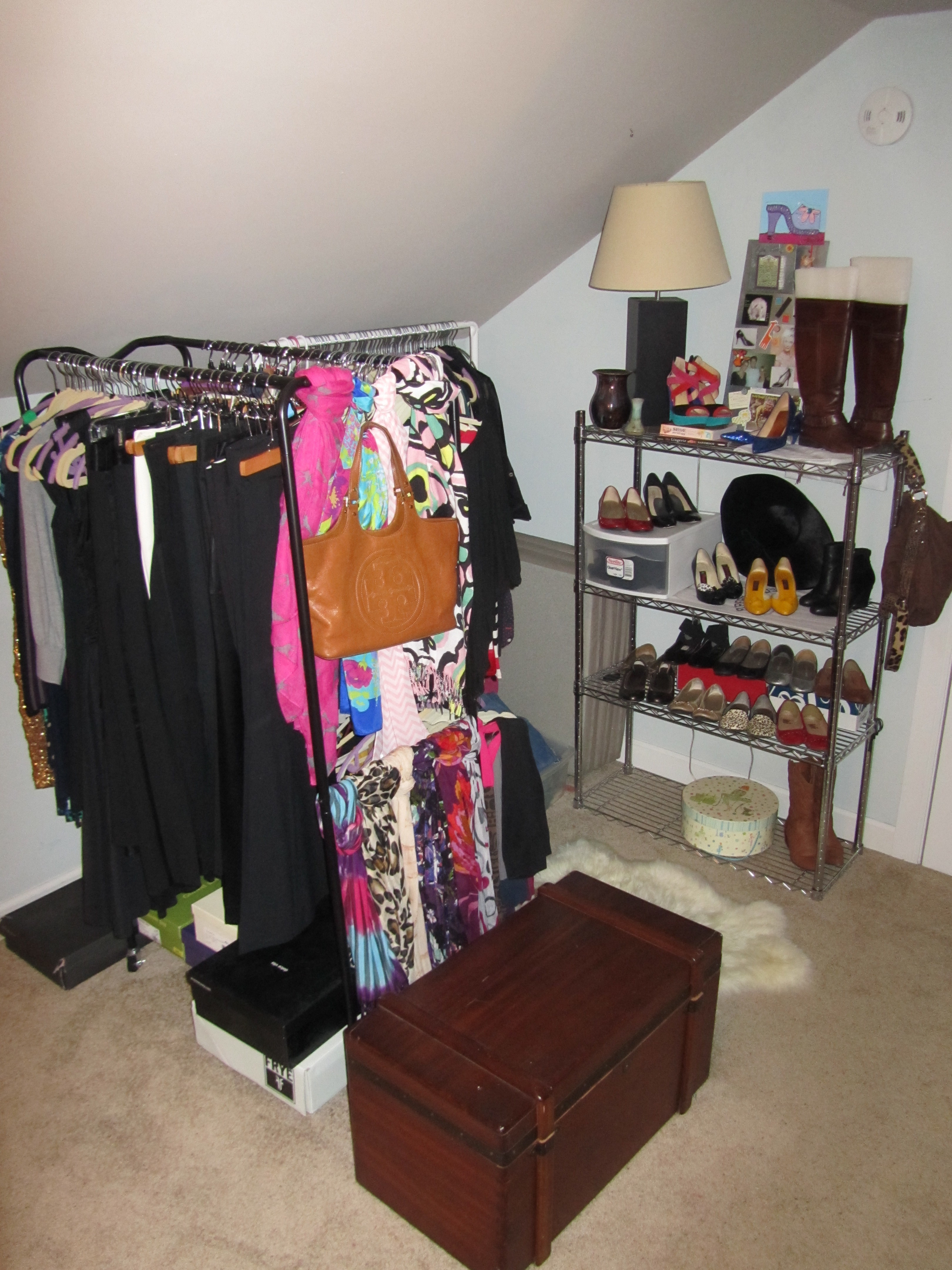 In fact, I don’t even have a real closet. I have a makeshift closet, but I love it all the same because I can see everything.