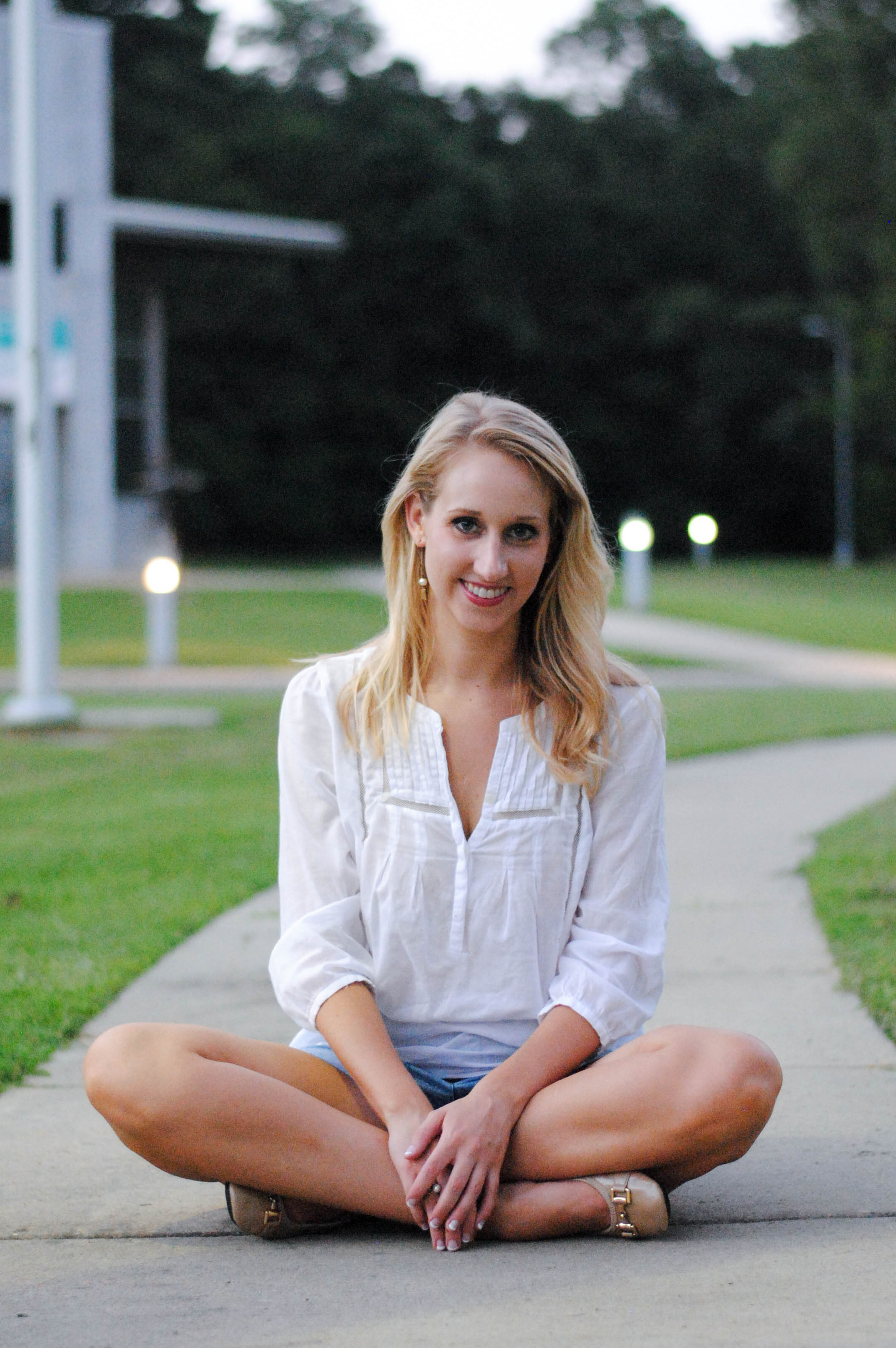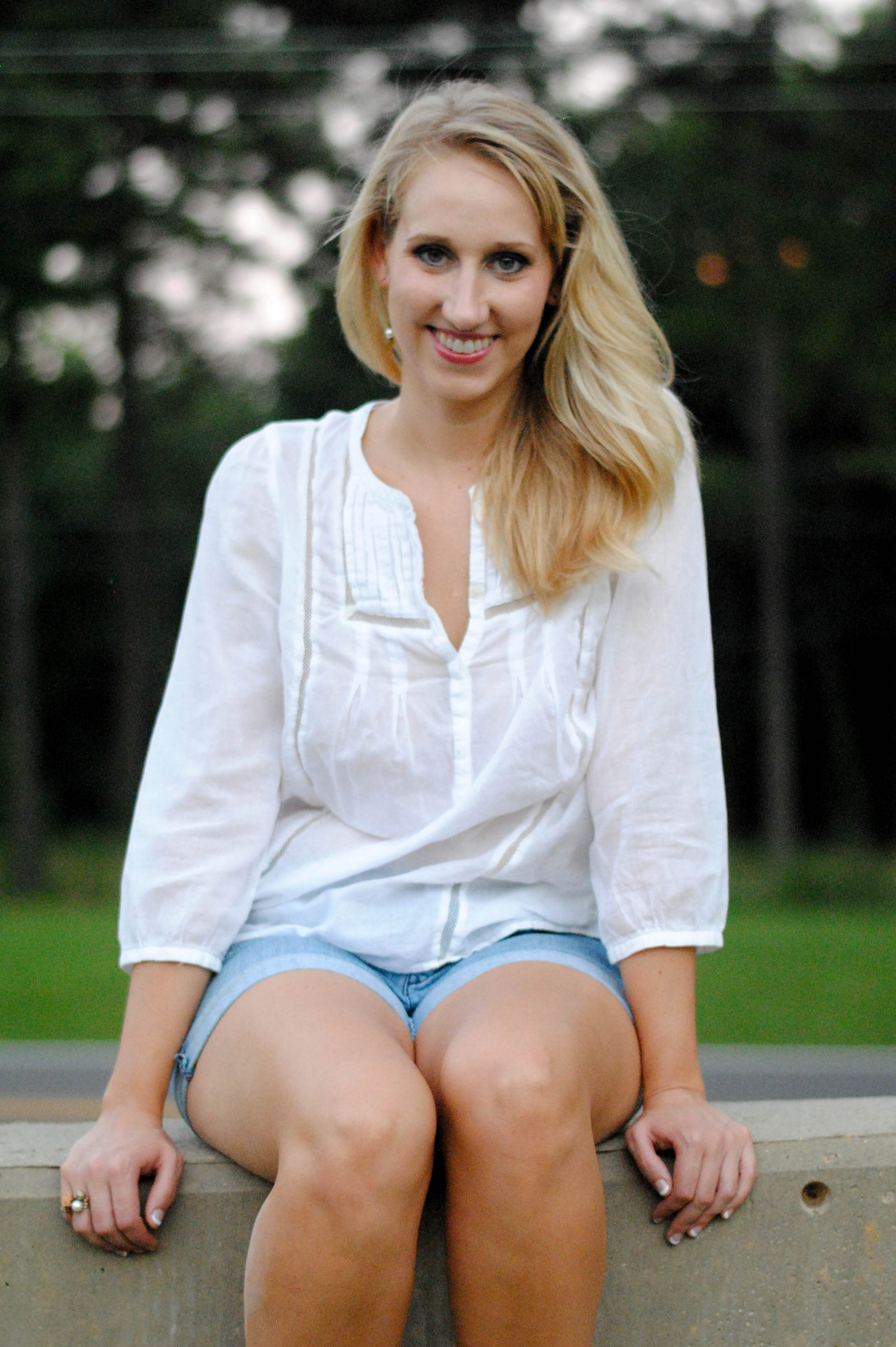 As summer draws nearer to an end I wanted to take the opportunity to share my favorite All-American summer look, denim and white. Now, according to a good color stylist most people would not be advised to wear stark white, including myself, but what better way is there to show off you summer sun kissed skin? As the temperature continues to be smoldering here in the South I advise sticking to cool fabrics like this flowy cotton top and lightweight denim shorts.