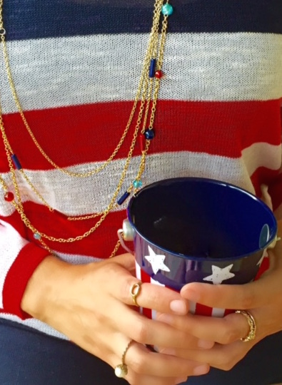 The 4th of July weekend is here! Time to celebrate America with fireworks, BBQ, outdoor activities, and other fun events! It’s also a time to show your American pride by wearing red, white, and blue! Despite the limited color palette your options of what to wear are unlimited. Dress according to how you will be spending the day. Last year I went to a friends house for a BBQ so, I wore and red and white maxi dress and accessorized with blue jewelry. This year I will be out by a lake shooting fireworks and playing outdoor games so I will stick to a more casual ensemble of shorts and a cool festive top. No matter how you spend your 4th, Honey and I hope you and your family have a happy, safe, and stylish day celebrating America’s birthday!