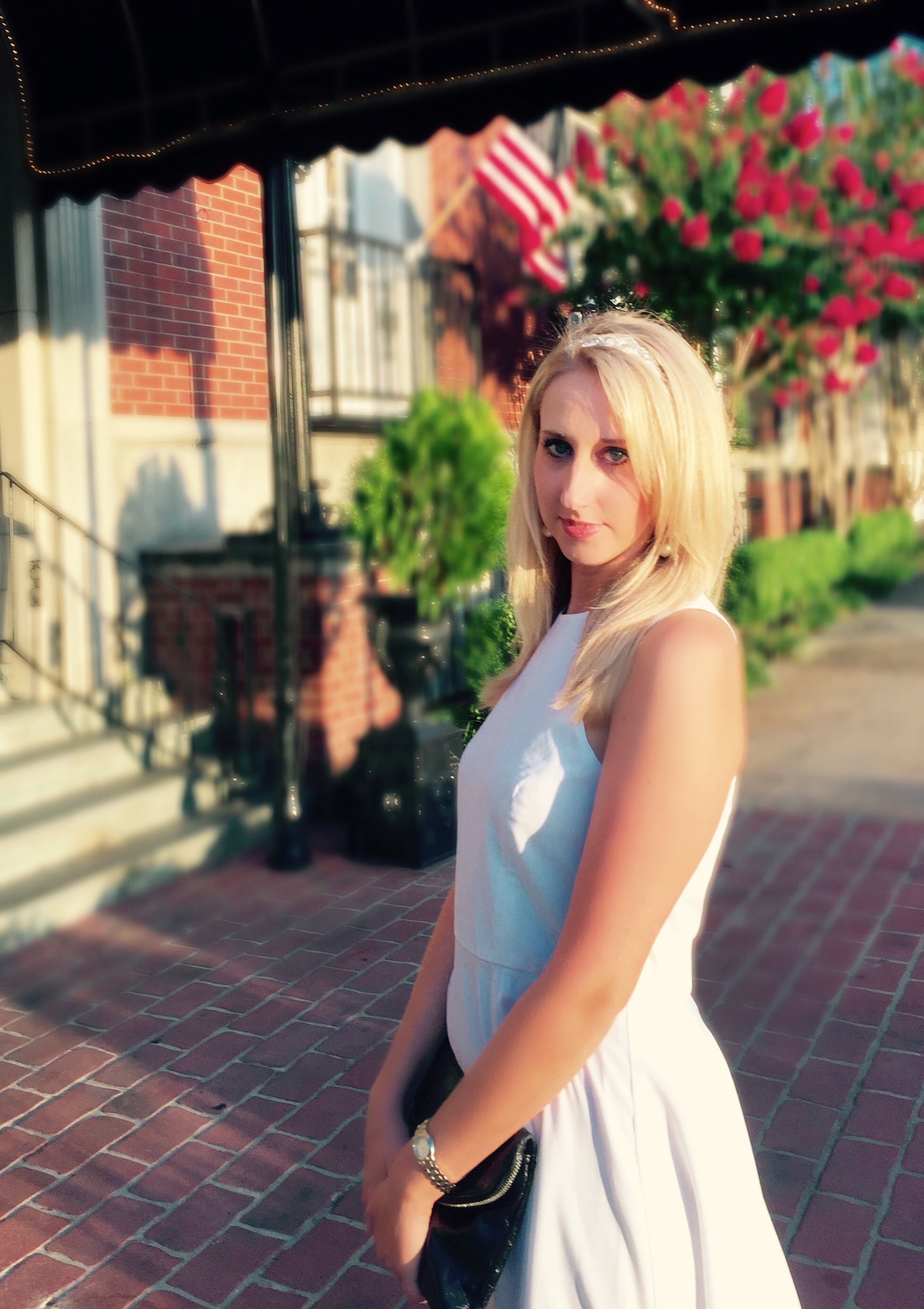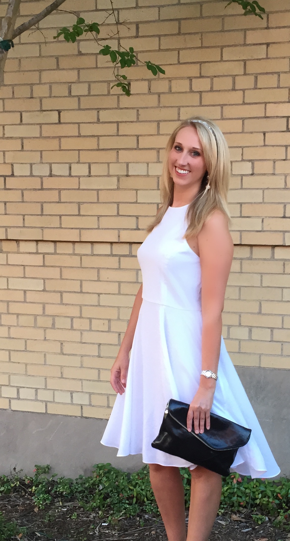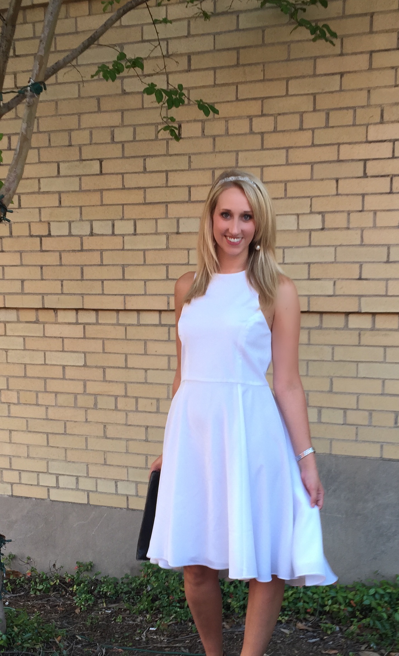 Congratulations to Mr. and Mrs. Downs! The newlyweds met in Washington, D.C., wed in New York and celebrated with friends and family in Jackson, Mississippi. The invitation to this celebration informed it’s guests to come dressed in “party attire.” While I feel like this could be interpreted many ways it appeared that most of the guests took it to mean to wear something fun. I saw people in bright colors, people in sparkles, and people in bold jewelry paired with a classic look. I went with this white high-low dress from UAL. It has a bold black zipper down the back that gives the dress an edgy look and paired it with black strappy heels and the black clutch. The beaded white headband served as my touch of bling. If you have a party coming up and need help choosing what to wear I am always happy to help!